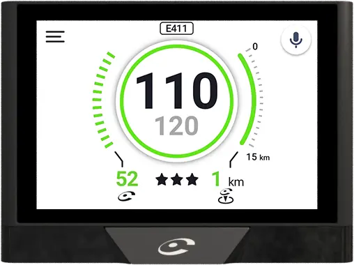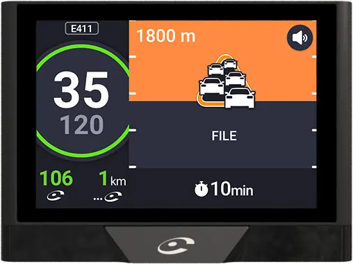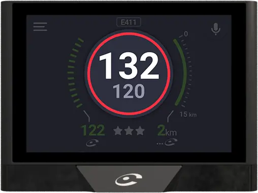 Dankzij de spraakassistent kunt u op een natuurlijke wijze snelheidscamera's en andere storingen waarnemen en bevestigen zonder uw ogen van de weg te halen. Het 3.5"-touchscreen en de unieke meldknop bieden u meer lees- en gebruiksgemak. De eenvoudige en moderne interface biedt u intuïtief de essentie van de Coyote-service.